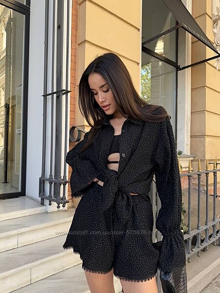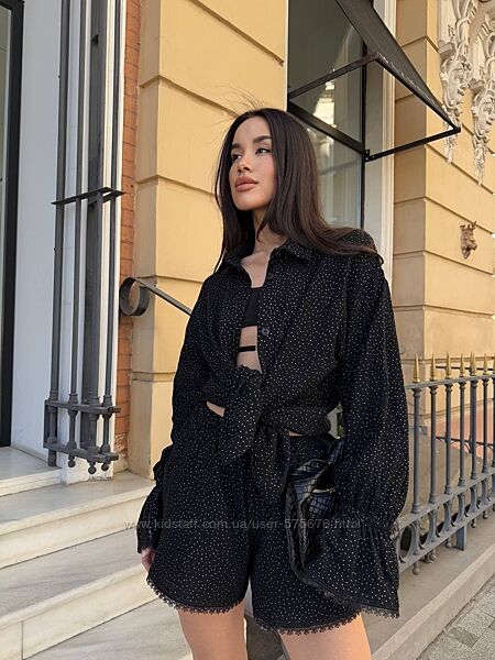 Подробное описание: 42-44, 46-48 костюм двійка сорочка та шорти муслін з блискітками
