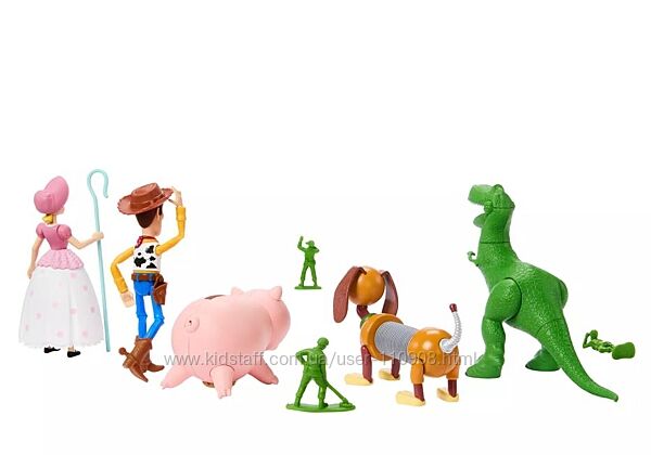 Ігровий набір рухливих фігурок на честь 30-річчя мф Історія Іграшок.У наборі: Вуді, Бо Піп, Рекс, Хемм і Слинки Дог, три зелені солдатики.