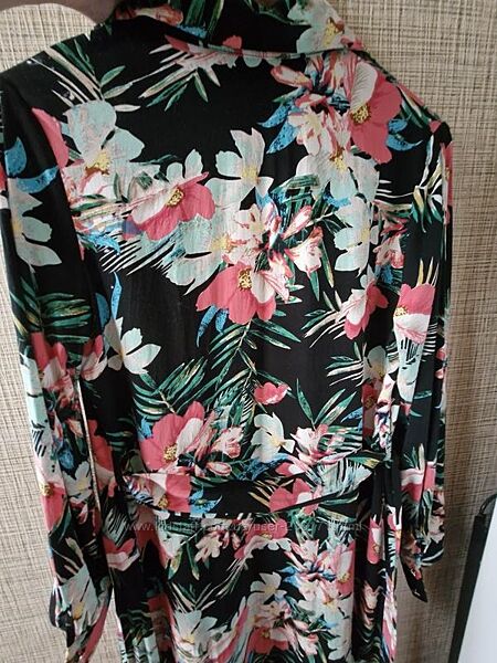 Подробное описание: Яркий пляжный или домашний халат миди на запах.