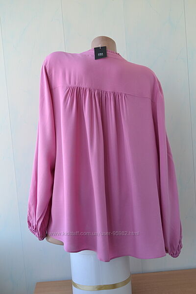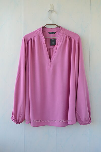 реальний колір на манекені.Блуза вільного крою Marks & Spencer, виготовлена із шовковистої, приємної до тіла віскози. Зверніть увагу, як вільно вона сидить на моделі. На бирці 20 розмір, сяде і на трохи більший, орієнтуйтеся за замірами.