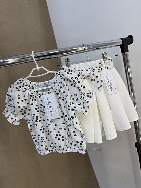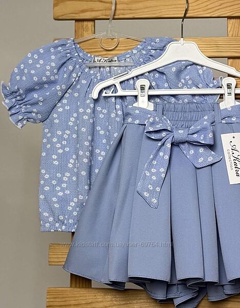 Подробное описание: Стильний весняно-літній комплект для дівчинки, блуза та спідниця-шорти