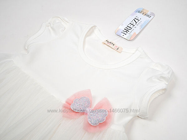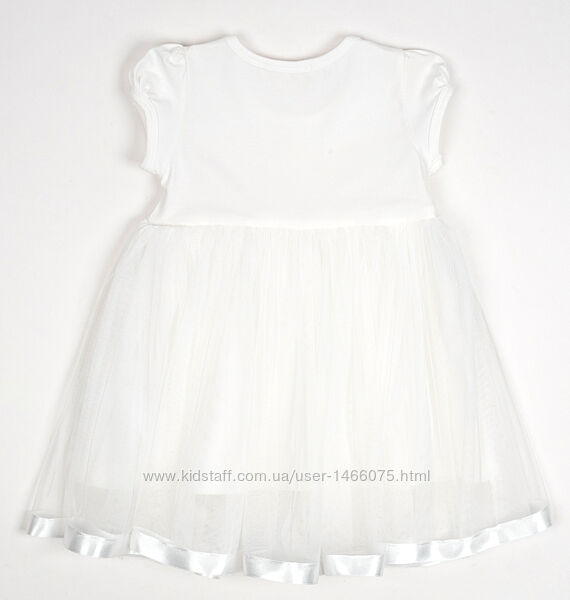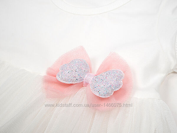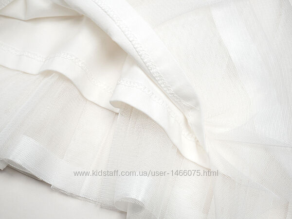 Ніжна сукня з бантиком та пишною фатиновою спідницею для дівчинки.Ефектна, гарна, нарядна сукня молочно-білого кольору, з короткими рукавами-ліхтариками та пишною фатиновою спідницею для маленької модниці.