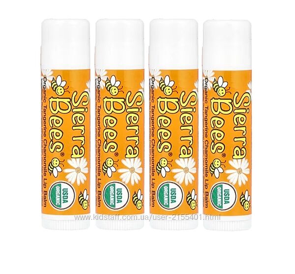Подробное описание: Sierra Bees, Органические бальзамы для губ, мандарин и ромашка, 4 шт.