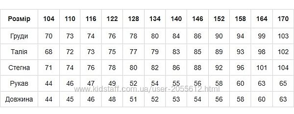 | Рост | 140 см, 146 см, 152 см, 158 см, 164 см, 170 см |