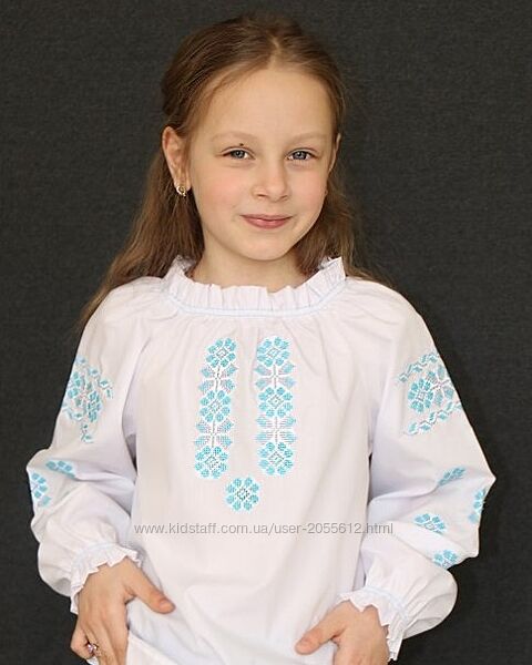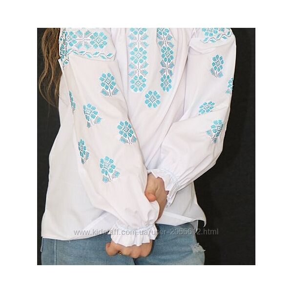 Подробное описание: Блуза для дівчинки з бірюзово-сірою вишивкою