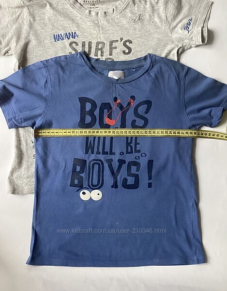 Продам футболки для двору, дому після своєї дитини, заміри на фото, дірок немає, на синій є чорні плямки( на фото видно), бавовна 100%, вартість 45 гривень, якщо дві - 80 гривень .