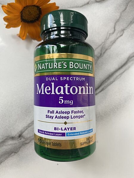 Nature´s Bounty, мелатонін подвійного спектра, 5 мг, 60 таблеток із подвійним шаром Відправлю в день замовлення.