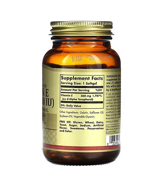 # Solgar, натуральний вітамін E, 268 мг (400 МО), 100 капсулОПИС: