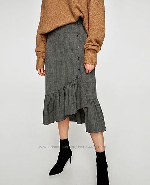 Новая Юбка с асимметричными оборками в клетку Zara