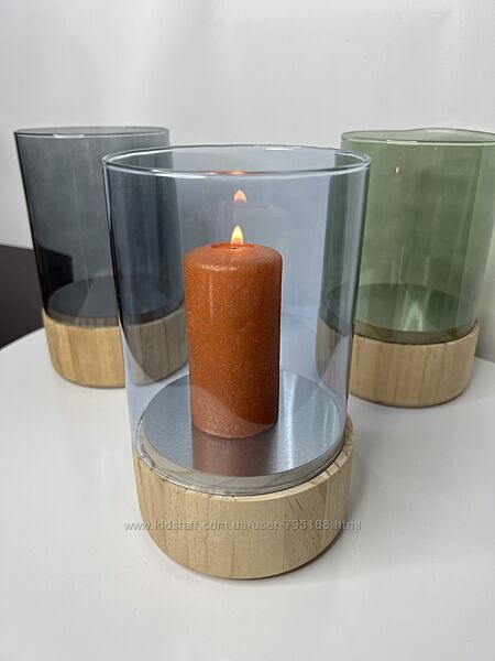 🕯️Скляний свічник livarno home з дерев´яною основою💫Такий свічник легко впишеться в будь-який інтер´єр!