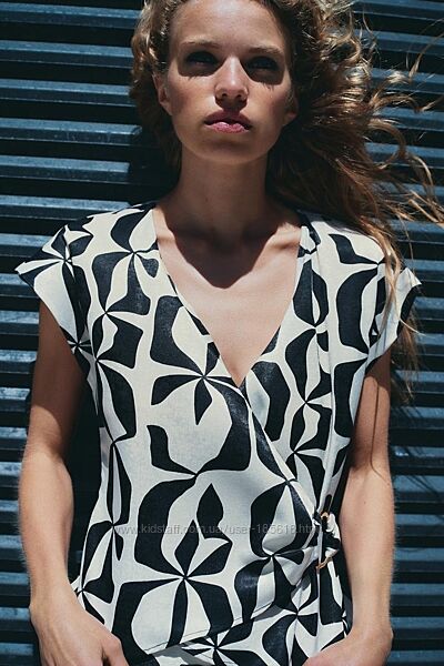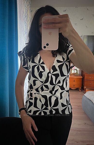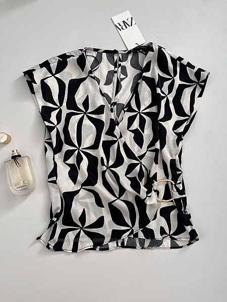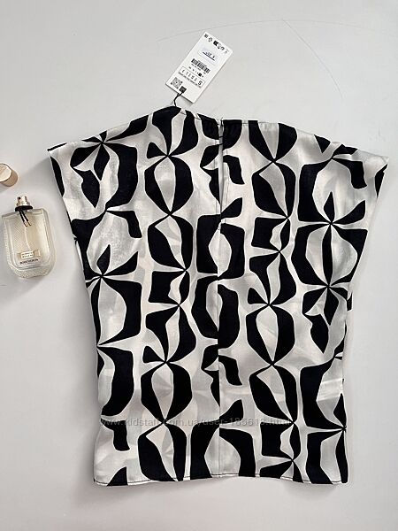 Елегантний нарядний атласний топ Zara. Дуже ефектний і сексі, завдяки глибокому декольте. Доповнює золота пряжка збоку.Застібається замком блискавкою збоку.