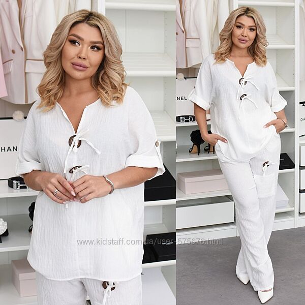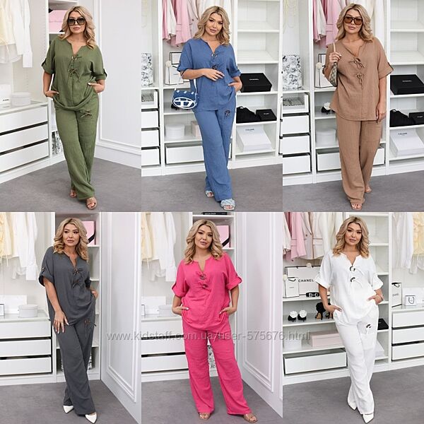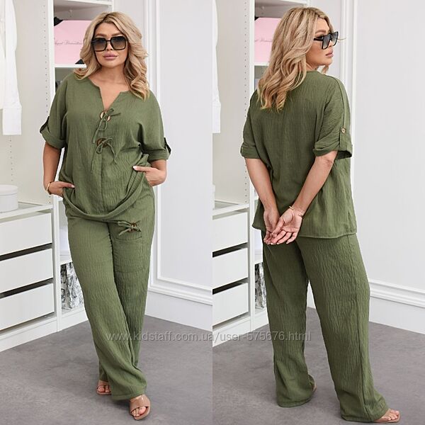 Подробное описание: р.48 до 58р. Костюм двійкафутболка та штани льон жатий