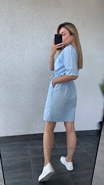 Плаття затягується на куліску, позаду на талії резиночка, з кишенями, рукав цільнокроєний.