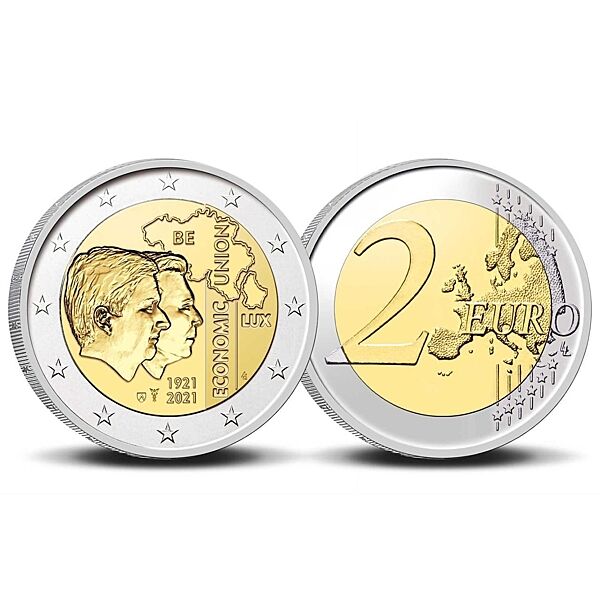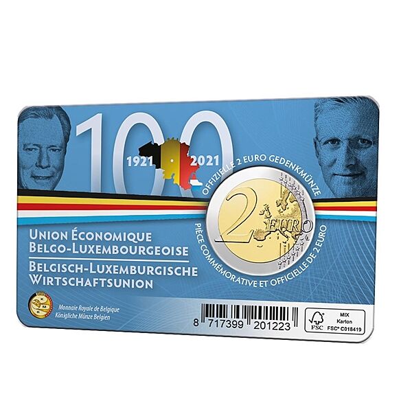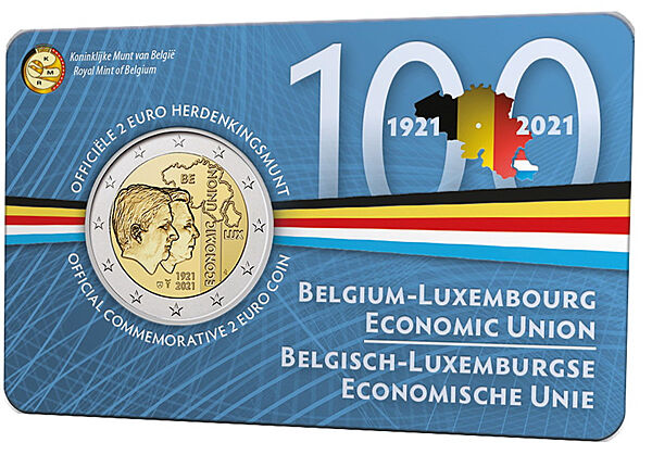 Бельгія 2021. 2 Євро. 100 років Бельгійсько-люксембурзьким союзу. Офіційний блістер
