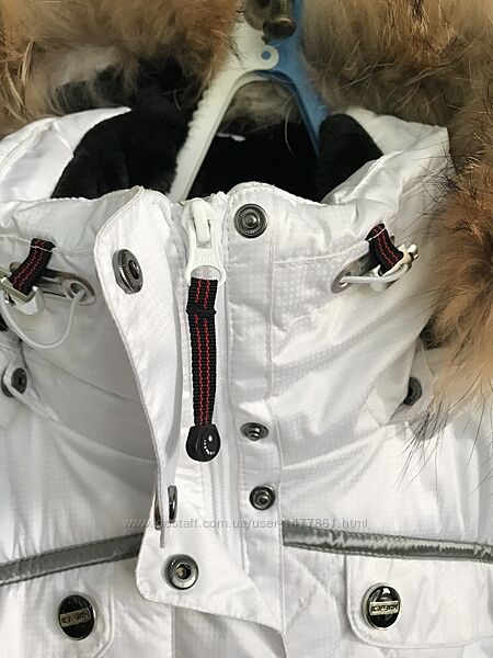 Куртка зимняя лыжная Icepeak ofra, р.42 в состоянии новой. Куртка сохраняет тепло и обеспечивает комфорт владельцу. Она защищает, благодаря функции IICETECH от ветра и дождя, но одновременно обеспечивает отличную воздухопроницаемость. Опушка мех енота (снимается), капюшон отстегивается, внутри ветрозащитная юбка, множество карманов, внутри рукавов трикотажные манжеты.Замеры: длина куртки - 68 см, ширина в плечах - 40 см, ширина под мышками - 54 см, длина рукава - 65 см