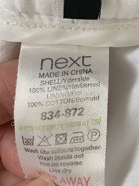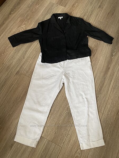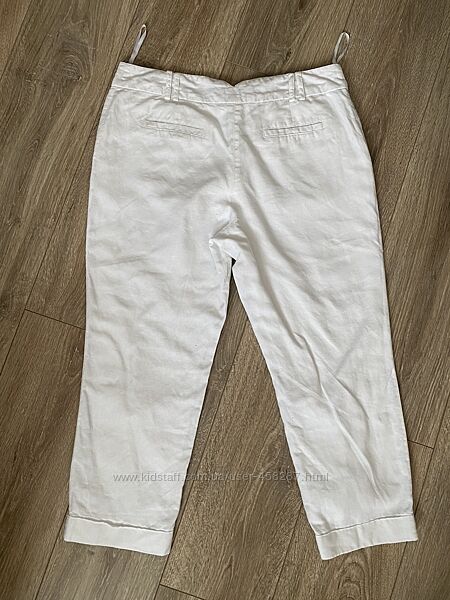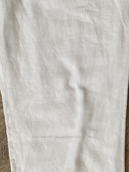 Лляні брюки Next, розмір L. Загальний стан ідеальний. Є дві невеличкі цяточки на лівому коліні, їх не сильно замітно. Фото зробила. Бриджі на підкладці. Довжина 87 см, кроковий шов 61 см, талія 1/2- 45 см, стегна 1/2- 55 см, посадка спереду - 28 см, ззаду 39 см, ширина штаніни верх 1/2- 34 см, коліно 1/2- 25 см, низ 1/1- 20 см, брюки 100% льон, підкладка - бавовна.Другие объявления продавца