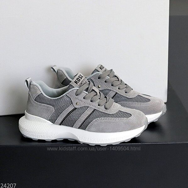 Ці стильні сірі кросівки ідеально поєднують в собі сучасний дизайн, натуральні матеріали та комфорт. Верх взуття виконаний з натуральної замші та дихаючого текстилю, що забезпечує вентиляцію навіть у теплі дні. М’яка устілка та легка підошва гарантують зручність при тривалому носінні.