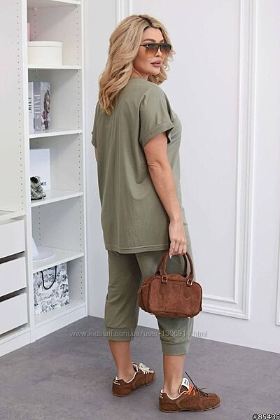 Подробное описание: Стильний костюм для прогулянки -футболка та капрі.