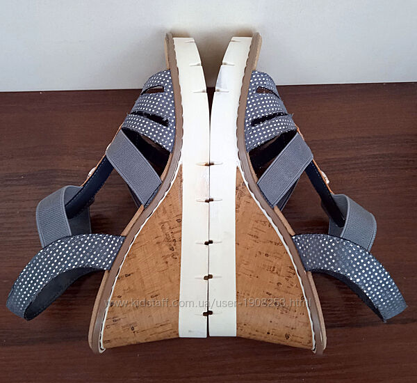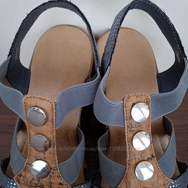 Подробное описание: Німецькі зручні жіночі босоніжки на танкетці, сірі з бежевим, літо, р. 37