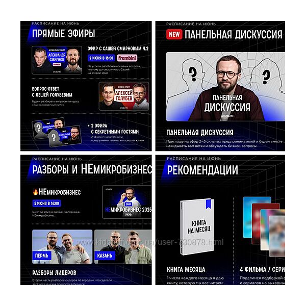 В картинках события, а внизу можешь добавить в календарь эфиры: