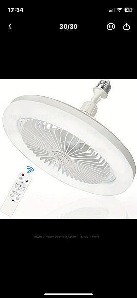 Вентилятор розумний з світлом. Має регулювання світла і швидкість.