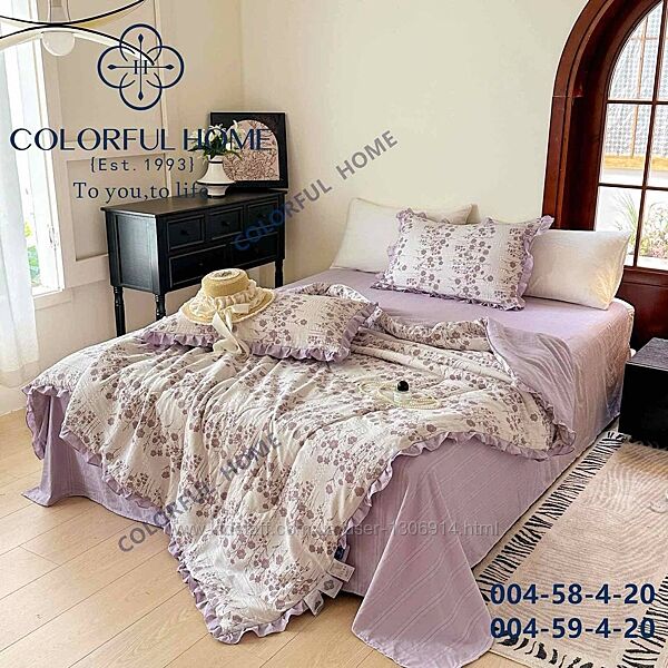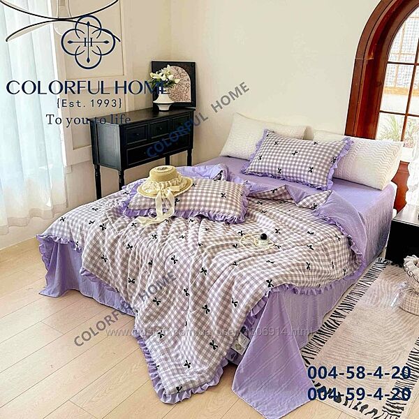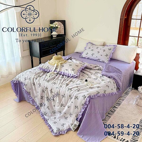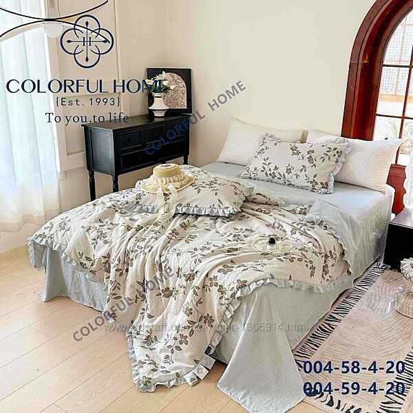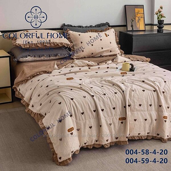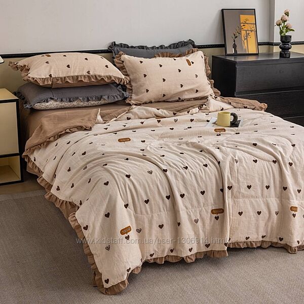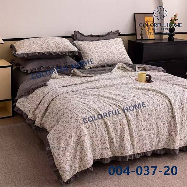 Вишукана новинка сезону!Постільна білизна з натуральної жатки з сучасним принтом і ніжним оздобленням рюшками.