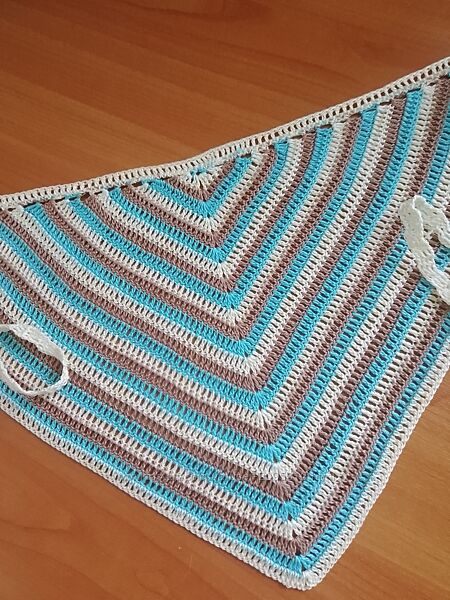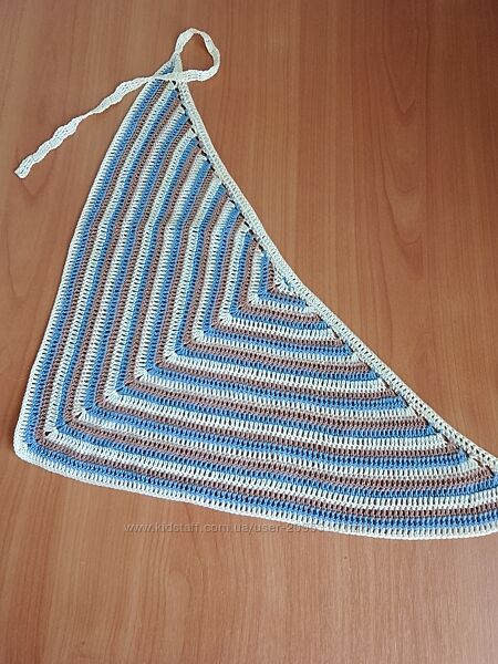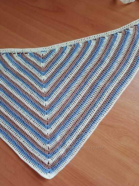 Пропоную чудову в’язану косинку ручної роботи - стильний і практичний аксесуар для літньої пори року! Косинка трикутної форми, виготовлена з м’якої якісної пряжі. Яскравий смугастий візерунок у поєднанні декількох кольорів додає образу свіжості та індивідуальності.✅ Розмір: будь-який