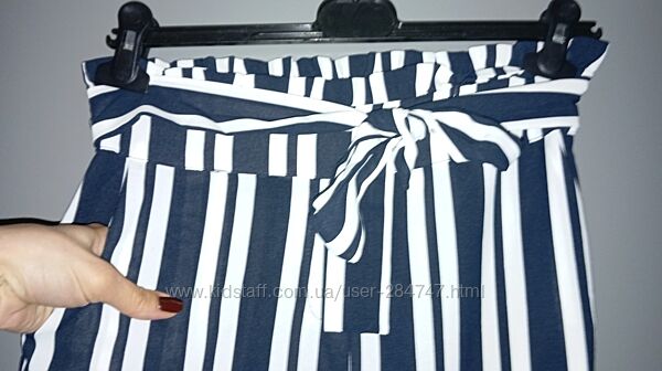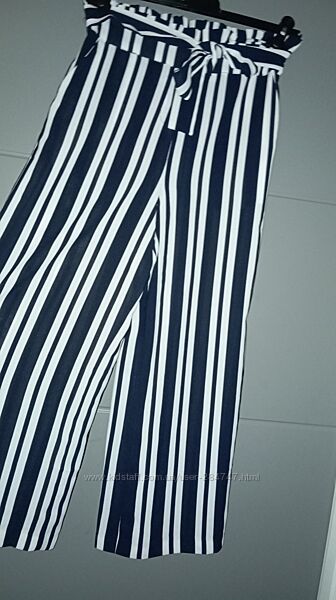 Фірмові Vila штани-кюлоти довжина 91 см, ПО талії 35 см та тягнеться до 46 см (спинка на широкій резинці). ПО стегон 45 см.По бірці розмір 36, отже наш розмір 42-44.