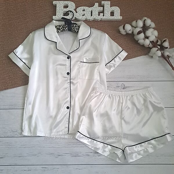 Атласна піжама. Сорочка +шорти.Приємна до тіла.