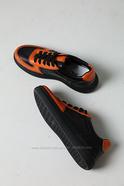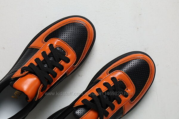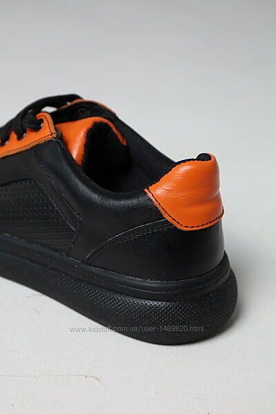 Подробное описание: Кроссовки летние черные оранжевые женские кожа перфорация v7-e7-094