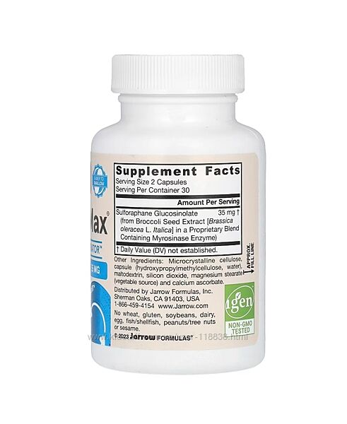 Екстракт насіння броколі BroccoMax® від Jarrow Formulas® містить активну мірозиназу, фермент броколі, який перетворює SGS (сульфорафан глюкозинолат, також відомий як глюкорафанін) на сульфорафан. Сульфорафан підтримує здорову реплікацію клітин та здоров´я печінки.