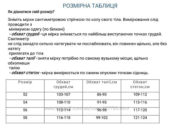 Розміри в наявності 52,54-продана, щоб уникнути неправильно підібраного розміру дивіться та орієнтуйтесь на виміри. Виміри вказані по готовому виробу, допускається похибка у вимірах +/-1-2см