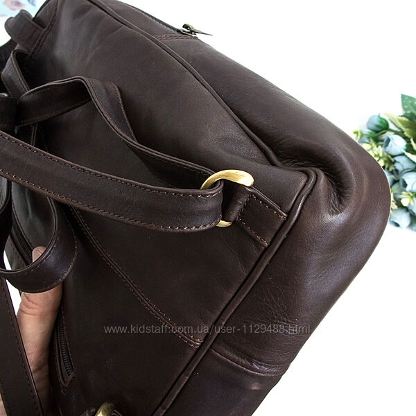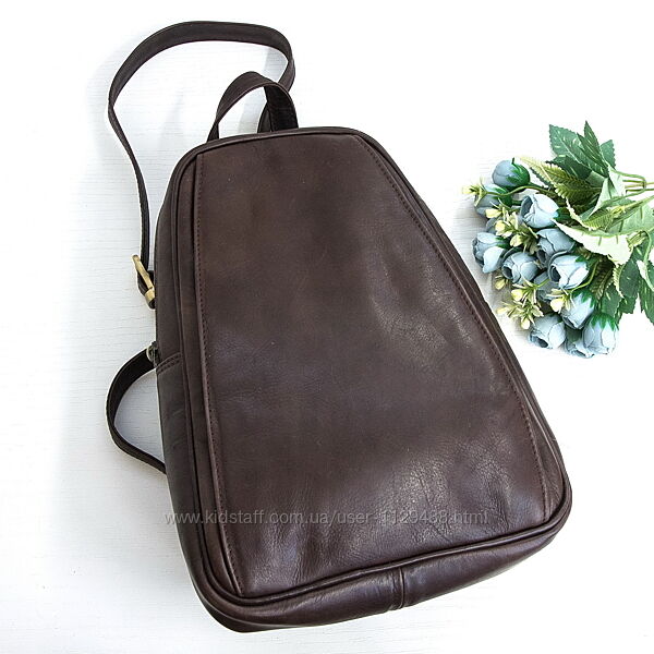 Аккуратной формы, не громоздкий, очень вместительный. Выполнен из пластичной натуральной говяжьей кожи высочайшего качества. Каркасный, отлично держит форму. Основное объемное отделение закрывается на молнию, внутри карман на молнии, открытый карман и маленький объемный кармашек без застежки. На фасаде скрытое большое отделение с вертикальным входом, на молнии. На тыльной стороне отделение на вертикальной молнии. Подкладка прочная, добротная.