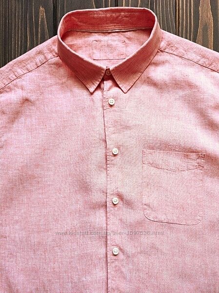 Мужская рубашка из льна известного английского бренда Marks & Spencer® Collection. Размер указан XL, но может пройти и на XXL , наш 52-54 размер (замеры см. ниже). Очень красивая, качественная, эксклюзивная . Модель Regular Fit с воротником Kent. Цвет указан Peach- персиковый. Низ слегка полукруглый. На груди карман с левой стороны. Материал 100% - чистый лен высочайшего качества. Рубашка имеет эргономичный крой и может носиться как навыпуск, так и в заправленном состоянии. Отличный вариант на жару для повседневной носки. Состояние- новая, без бирки, Сток. Производство Бангладеш. Цена на официальном сайте от 40 фунтов. Отвечу на Ваши вопросы. Замеры: ширина в плечах 52см. ширина по спине (от подмышки до подмышки )- 65 см. ширина по талии 63см, ширина по низу 65см, длина рукава по внешнему шву- 68 см. длина рукава по внутр.шву- 52 см. общая длина рубашки –79 см. ворот 44-46см.