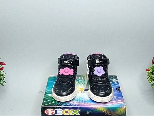 Дитячі черевики з мигалками, хайтопи Geox Skylin 25,32,33,35,37 р дівчинці демісезонніКвіточки можна видалити. Підошва мерехтить при ходьбі. Мигалки можна вимкнути.