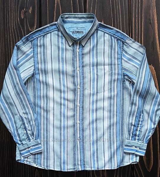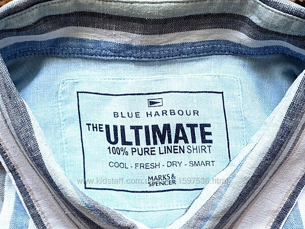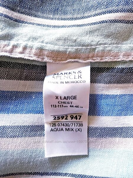 Мужская рубашка из льна известного английского бренда Marks & Spencer® Blue Harbour. Размер указан XL, наш 52 размер (замеры см. ниже). Очень красивая, качественная, эксклюзивная . Модель Regular Fit с воротником Kent. Цвет указан Aqua Mix- бело-голубая-бирюзовая полоска. Низ слегка полукруглый. На груди карман с левой стороны. Материал 100% - чистый лен высочайшего качества. Рубашка имеет эргономичный крой и может носиться как навыпуск, так и в заправленном состоянии. Отличный вариант на жару для повседневной носки. Состояние- новая, без бирки, Сток. Производство Марокко. Цена на официальном сайте от 40 фунтов. Отвечу на Ваши вопросы. Замеры: ширина в плечах 51,5см. ширина по спине (от подмышки до подмышки )- 64 см. ширина по талии 64см, ширина по низу 64см, длина рукава по внешнему шву- 67 см. длина рукава по внутр.шву- 55 см. общая длина рубашки –80 см. ворот 44-46см.