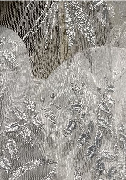 • Прозорий верх із вишивкою — делікатна сітка з квітковим орнаментом мʼяко покриває зону декольте, шию та плечі.