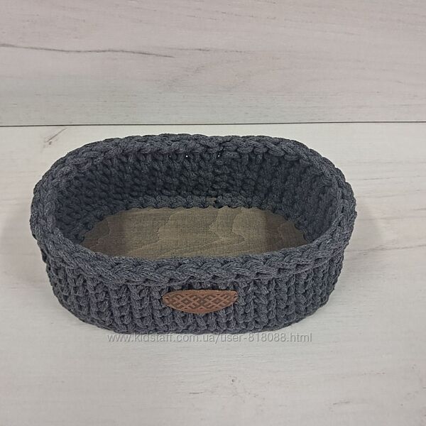 🔸 Матеріал: 100% бавовняний шнур, фанерне дно, шкіряна бірка