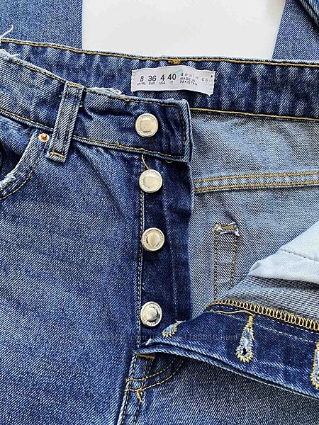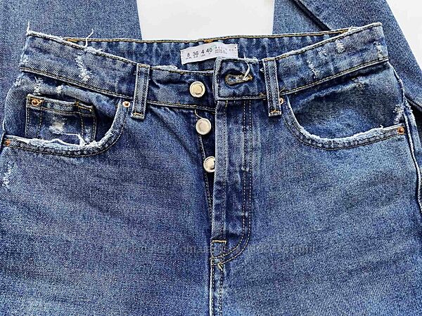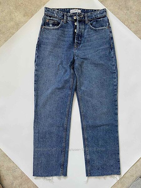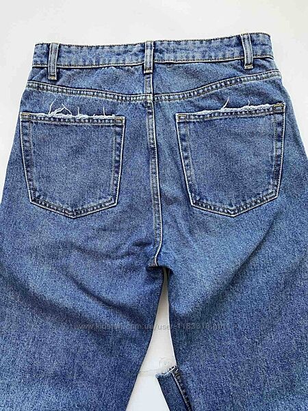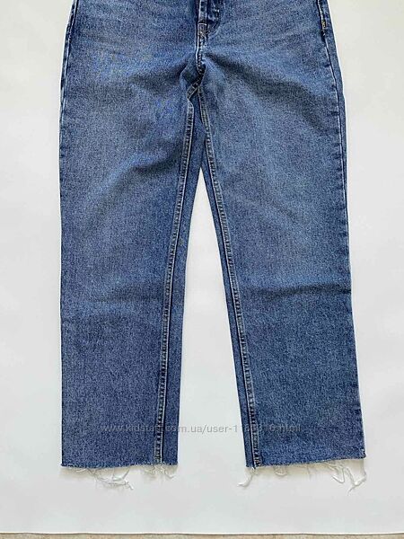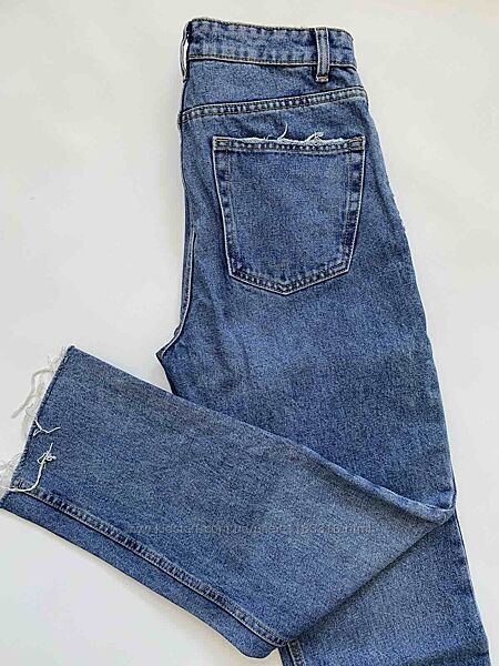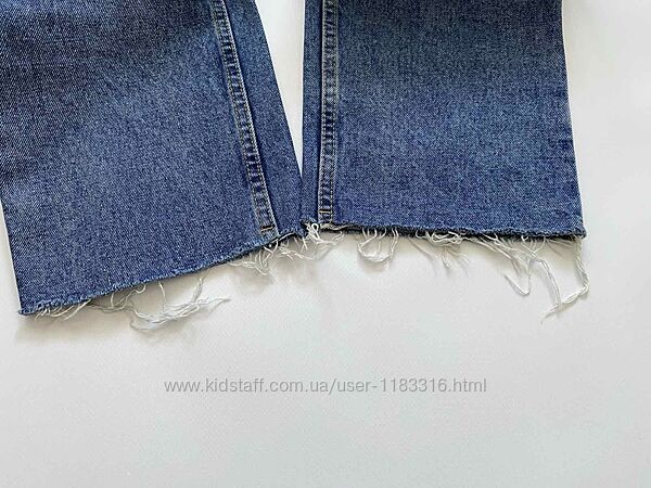 Джинси нові, синього кольору. Застібка на гудзиках. Необроблений край штанини.Висока посадка.