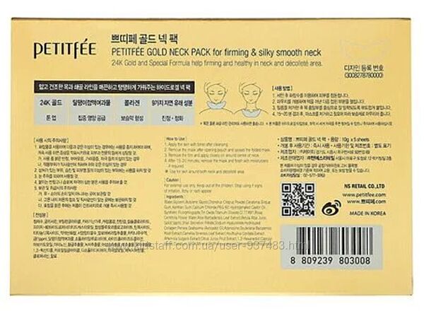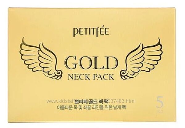 Гидрогелевая маска для шеи Petitfee Gold Neck PackPetitfee — известный бренд, который делает именно гидрогелевые маски разного формата (для глаз, лица, шеи, декольте). Их гидрогель плотный, но пластичный и богат эссенцией. Маска действует как компресс — не даёт влаге испаряться, и кожа шеи получает максимум увлажнения и питания за короткое время.