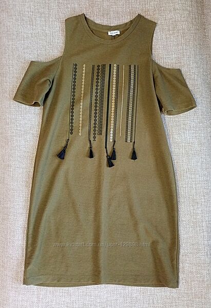 Сукня вільного крою етно принт з китичками колір хакі River Island