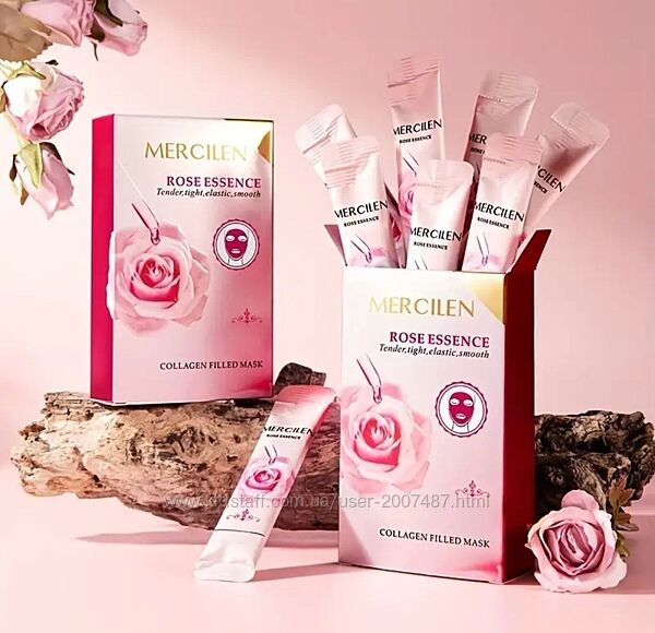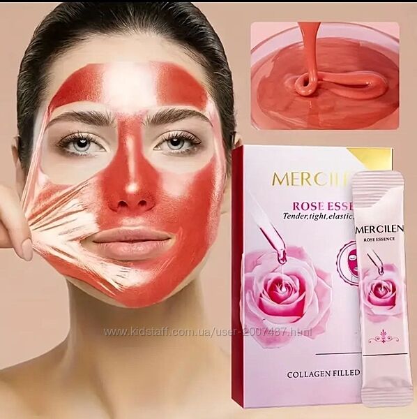 Маска - плівка з колагеном MERCILEN Rose Essence - зволожуюча і зміцнююча з гіалуроновою кислотою, гіпоалергенна, для чутливої шкіри, зволожуюча маска для обличчя.