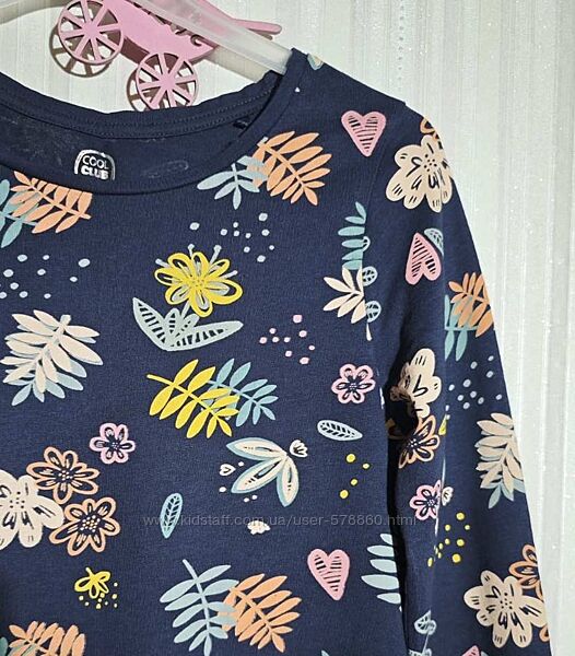 Темно-синя сукня з рослинним принтом від Cool Club у розмірі 134.Довгий рукав, стан ідеальний.