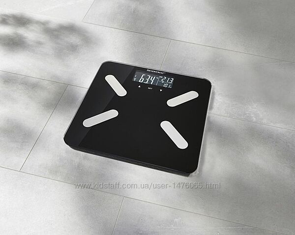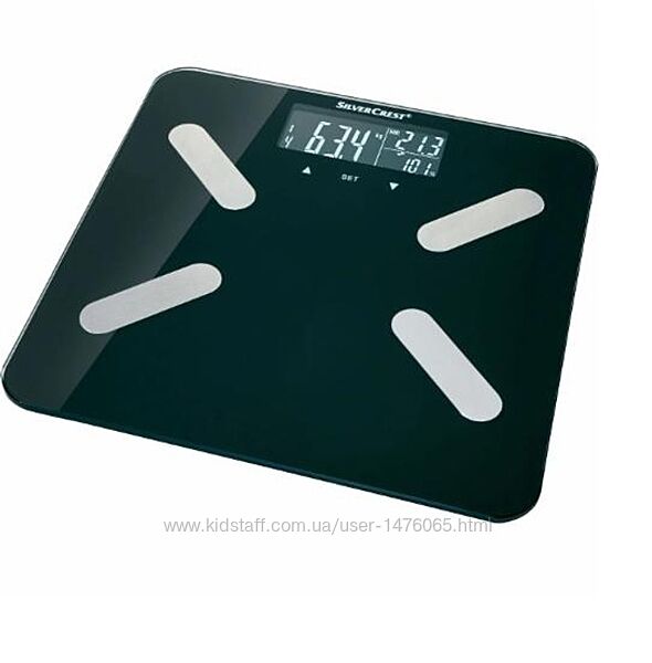 Привезені з Німеччини нові якісні аналітичні підлогові ваги Silver Crest SPWD 180 A2. Максимальна вимірювана вага - 180 кг, ціна поділки - 100 г, платформа виготовлена із загартованого скла товщиною 6 мм зі вставками з нержавіючої сталі, LCD-дисплей з підсвічуванням, тип живлення пристрою - елемент живлення тип CR2032 (батарейка-пігулка), додаткові функції: вимір жирової тканини, води, м´язової тканини, кісткової тканини, щоденних калорій, індексу маси тіла, товщина ваг - 22 мм, автоматичне відключення, пам´ять користувачів на 12 комірок, індикація перевантаження та низького заряду батарейки, вага пристрою - 1,57 кг, габарити - 30.30.2,2 см, країна-виробник - Німеччина (КНР), відмінна якість.Надається справжня документована гарантія - 6 місяців.