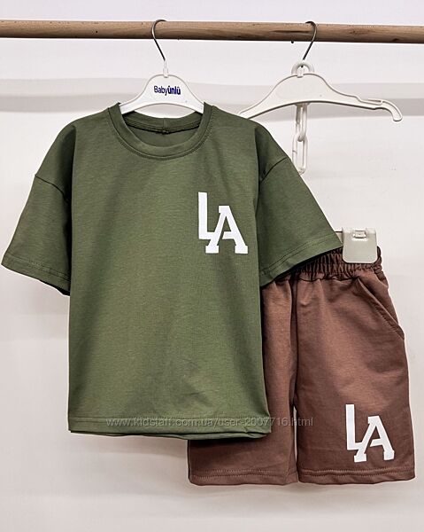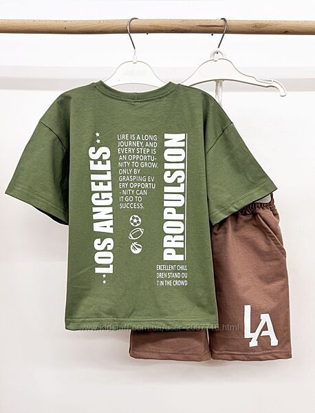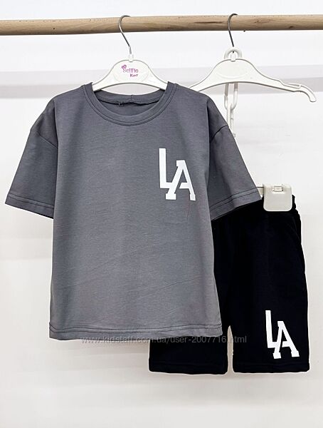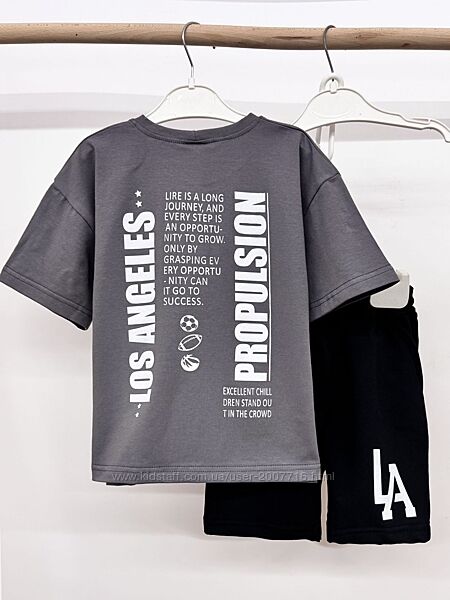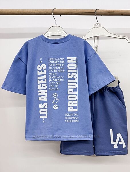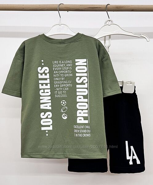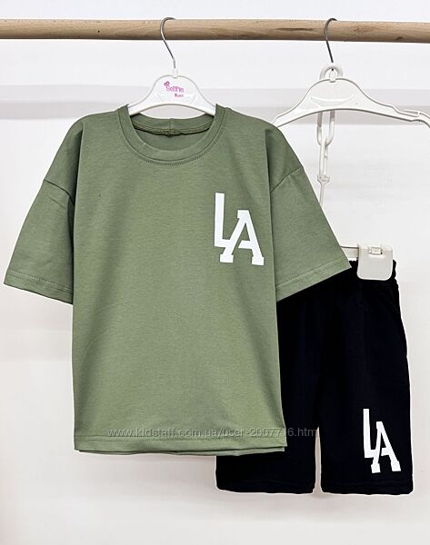 Комплект літній для дівчинки і хлопчика (футболка дитяча оверсайз, подовжена, декорована принтом попереду і принтом на спинці вільний крій, спущене плече + шорти на широкій резинці, з боків є кишені, вільний крій ), підійде для діток від 2-3 років до 12-13 років.Футболка пошита з хб полотна стрейч кулір.