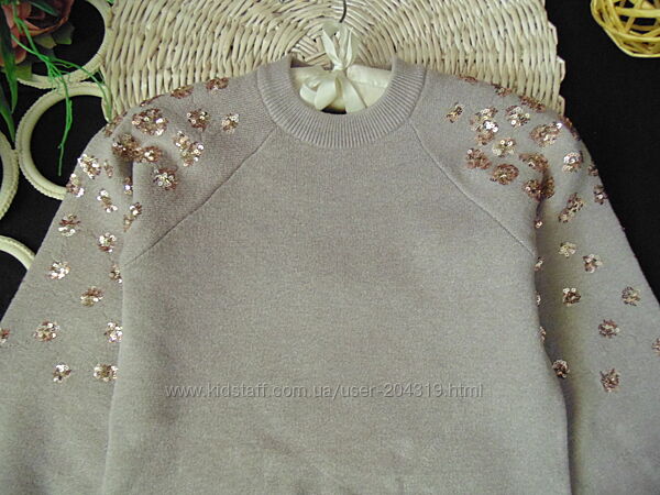 **Особливий акцент — розсип блискучих паєток на плечах і рукавах, які додають образу святкового шарму.