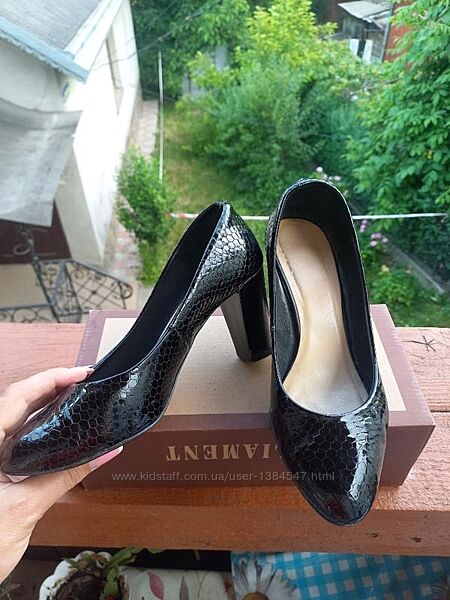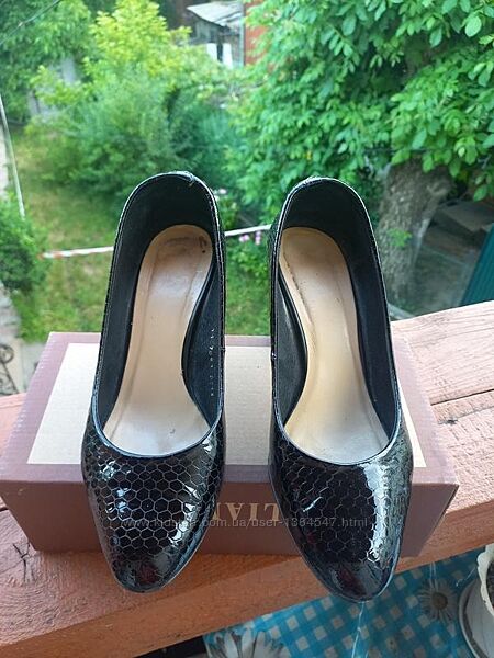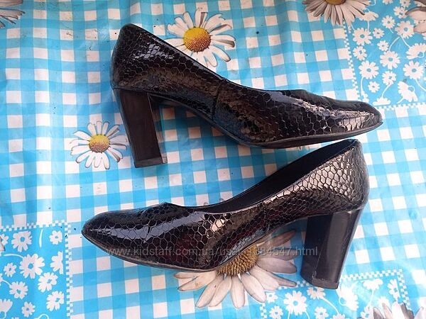 Брендовые черные кожаные туфли на каблуке Kotyl, 37 размер.