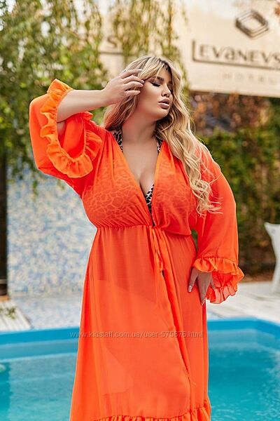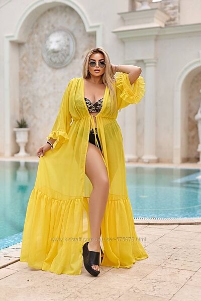 Подробное описание: р.42 до 64р довга пляжна накидка парео з довгим рукавом шифон