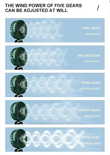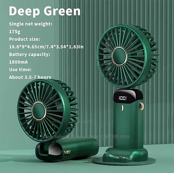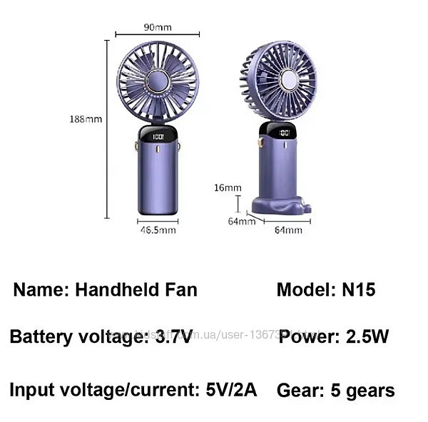 Подробное описание: Вентилятор портативний з акумулятором дисплеєм 5 рівней складається