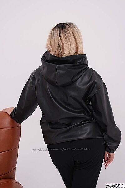 р.48 до 62р. Стильна куртка бомбер з капюшоном високоякісна еко шкіра на за